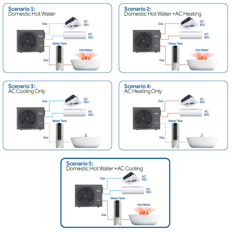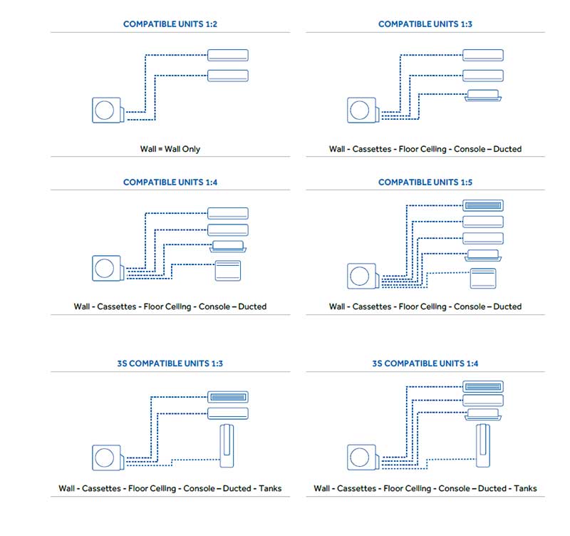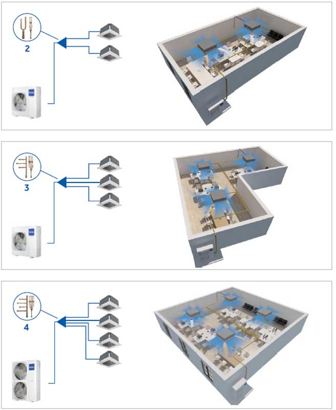 Jedna spoljna jedinica – više prostorija: do 5 unutrašnjih jedinica na jednu spoljnu.