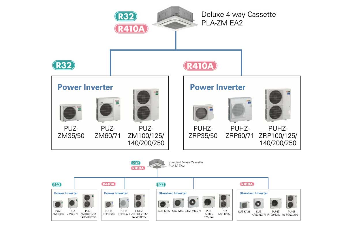 Mitsubishi Electric PLA-M serija predstavlja vrhunsko rešenje za klimatizaciju većih komercijalnih i poslovnih objekata. Ove četvorosmerne (4-way) kasetne jedinice namenjene su za ugradnju u spušten plafon i omogućavaju ravnomerno hlađenje i grejanje velikih površina, uz visok nivo komfora i energetske efikasnosti.