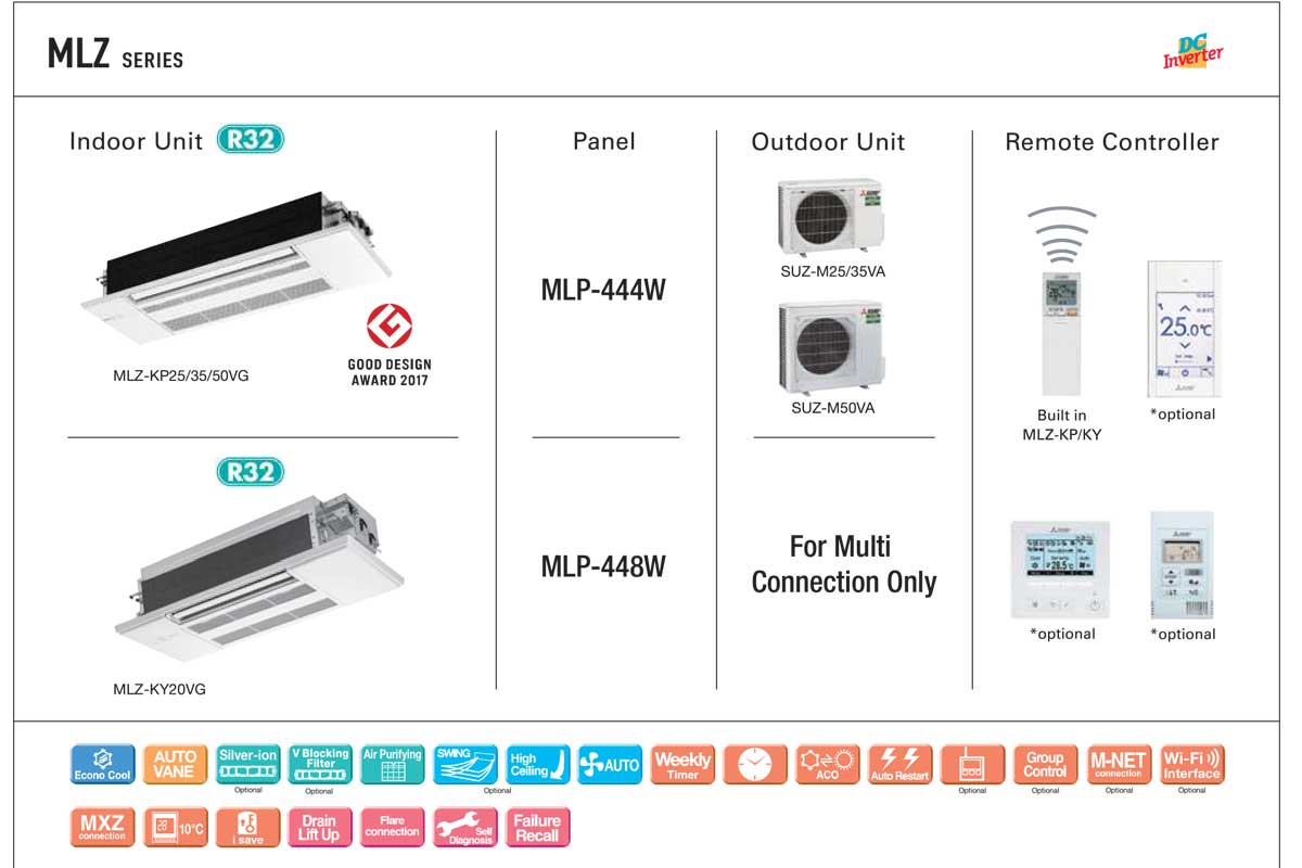 MLZ serija koristi horizontalni protok vazduha, koji omogućava ravnomerno hlađenje i grejanje bez direktnog udara vazduha na korisnike. U kombinaciji sa automatskim lamelama koje se kreću u svim pravcima (gore/dole i levo/desno), postiže se maksimalan komfor u prostoru.