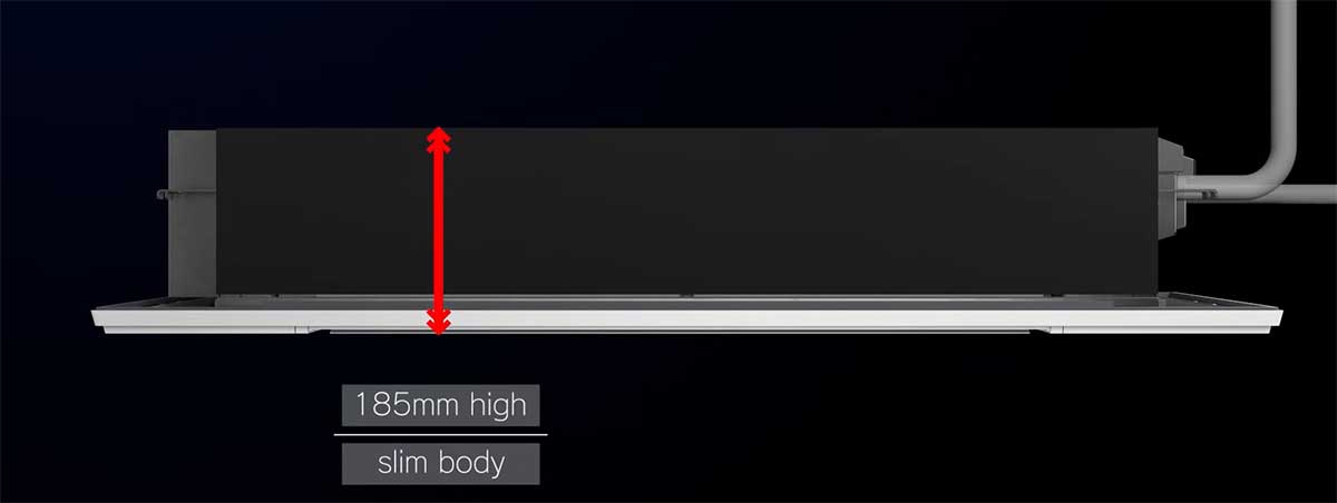 Zahvaljujući ultra tankom kućištu i linearnom dizajnu, MLZ jedinice se savršeno uklapaju u svaki enterijer – vidljiv ostaje samo minimalistički panel, dok je kompletna tehnologija skrivena u plafonu.
