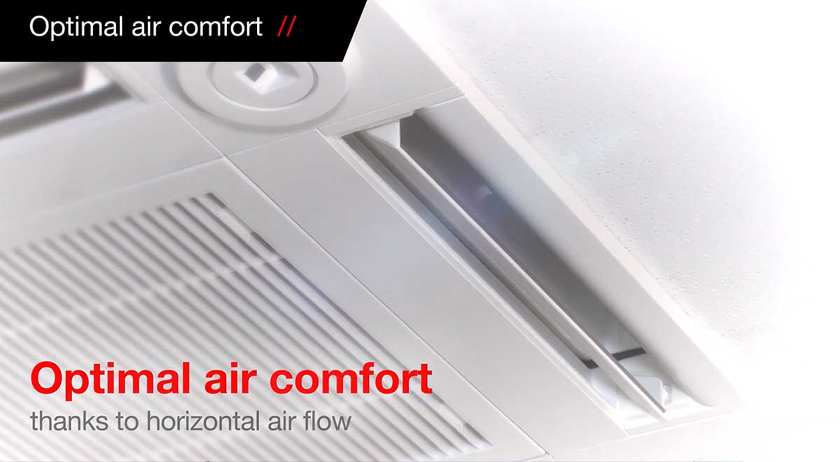 4-way airflow omogućava distribuciju vazduha na sve četiri strane, čime se postiže maksimalan komfor u prostoru i eliminacija direktnog duvanja u korisnike.