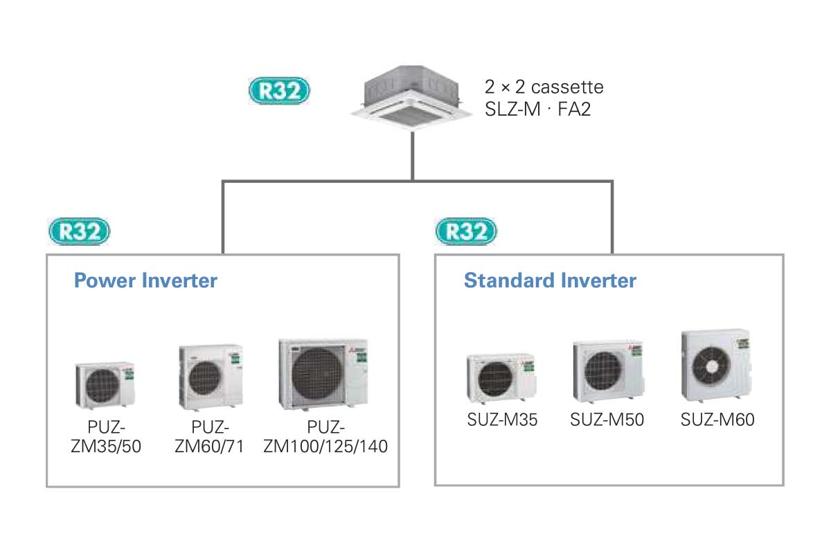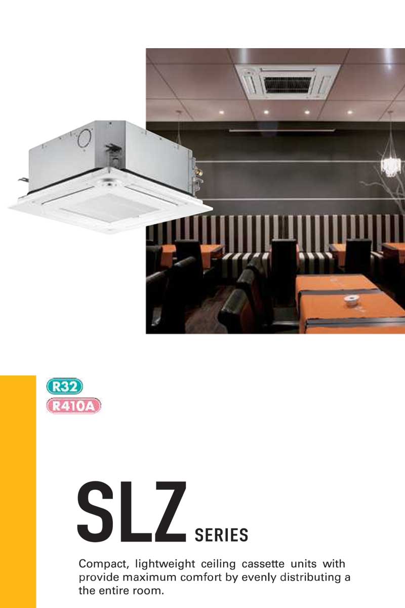 Mitsubishi Electric SLZ serija predstavlja kompaktno i efikasno rešenje za klimatizaciju prostora uz maksimalan komfor i ravnomernu distribuciju vazduha. Zahvaljujući 4-stranom izduvu vazduha, SLZ kasetne jedinice obezbeđuju optimalno hlađenje i grejanje u svim delovima prostorije, bez stvaranja neprijatnih zona.