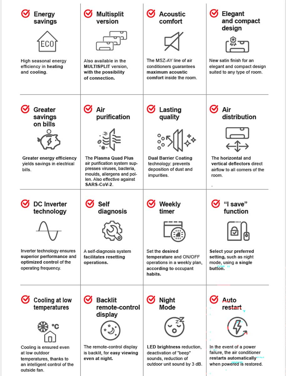 MSZ-AY42VGK nije namenjen samo letnjem hlađenju – zahvaljujući kvalitetnom Mitsubishi Electric kompresoru, uređaj obezbeđuje pouzdano i efikasno grejanje čak i pri nižim spoljnim temperaturama, čineći ga odličnim izborom za celogodišnju upotrebu.
