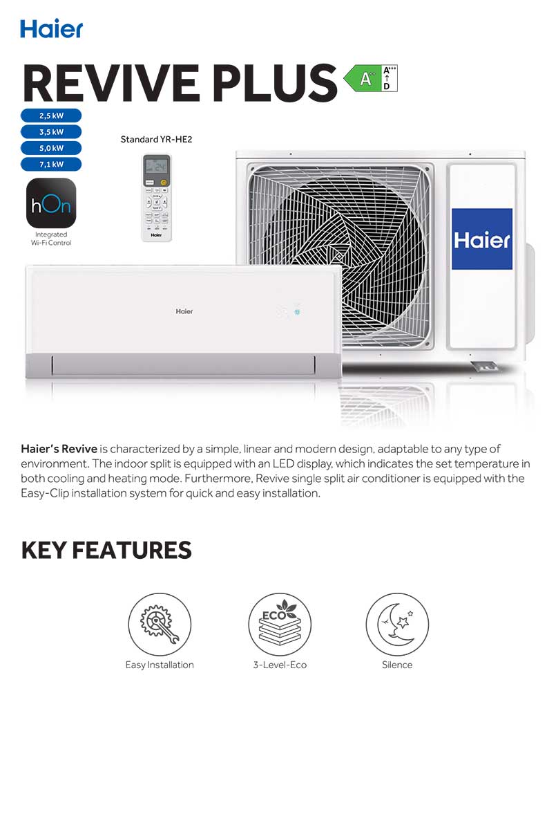 Dodatno, korišćenje rashladnog gasa R32 doprinosi smanjenju negativnog uticaja na životnu sredinu, jer ima manji potencijal globalnog zagrevanja u poređenju sa starijim tipovima gasa. Na taj način Haier Revive predstavlja spoj ekološke odgovornosti i vrhunskih performansi, što ga čini odličnim izborom za moderne domove i poslovne prostore koji teže održivim rešenjima.